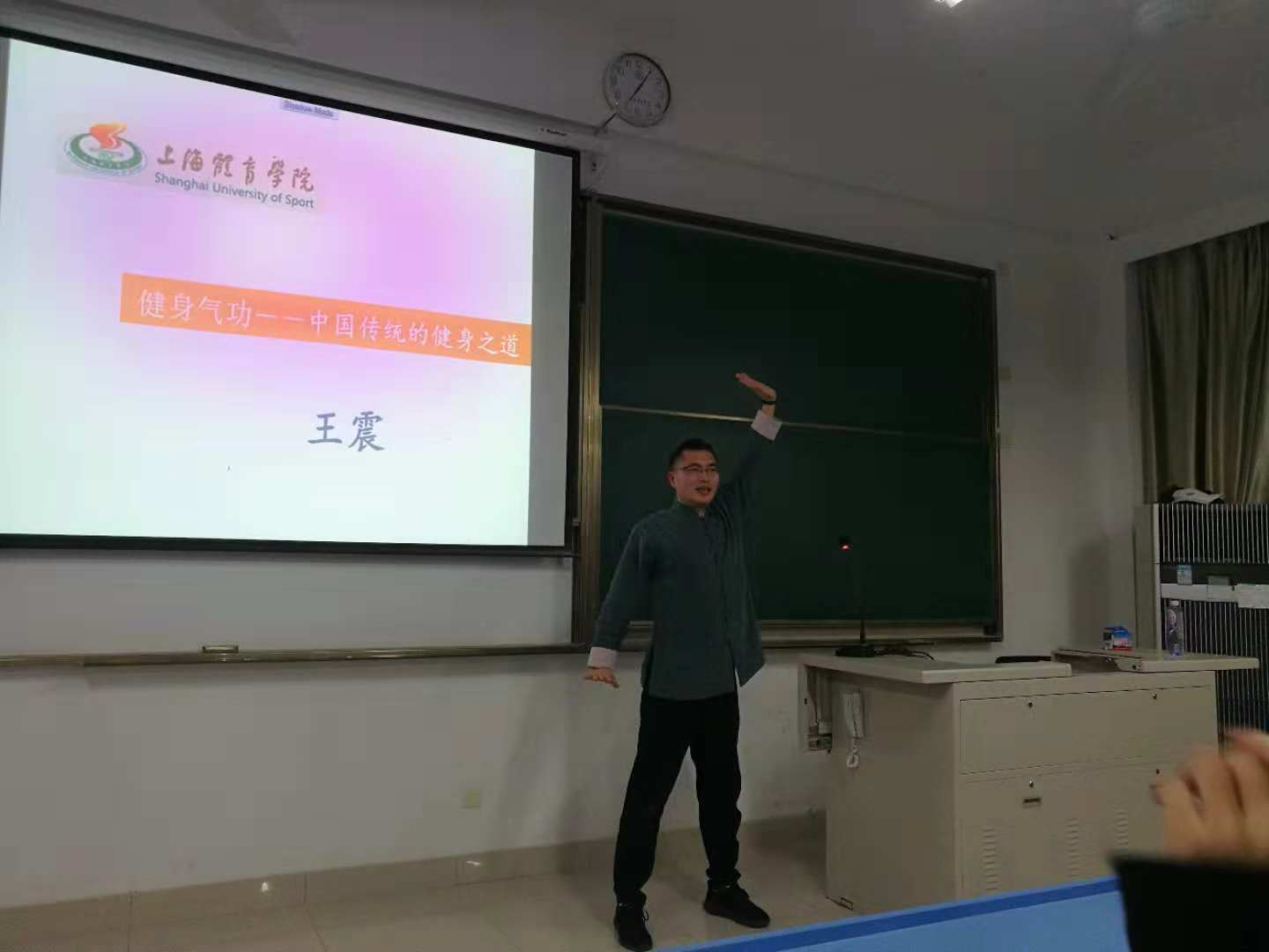 11月1日晚上6点,本学期人民健康思政选修课“全民健身与人民健康”在南苑E105教室顺利开讲,中国武术博物馆副馆长、上海体育学院副教授王震博士在百忙中应邀为同学们进行专题讲授“全民健身与人民健康”。