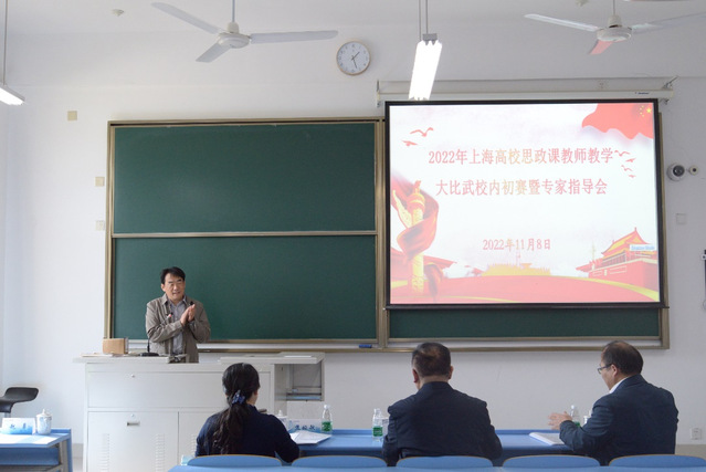 为了深化中共中央关于思政课改革创新的相关意见以及上海市教委关于2022年度上海高校思想政治理论课质量提升行动的通知要求,扎实做好党的二十大精神“三进”工作,特别是习近平新时代中国特色社会主义思想进课堂、进思想、进头脑,进一步提升betway西汉姆联思政课教学质量和育人水平,增强思政课思想性、理论性、亲和力以及针对性,从而激发思政课教师讲好思政课的积极性,真正地做到将党的二十大精神“讲深、讲活、讲透”。betway西汉姆联于11月8、9日下午在南苑W102教室分两场举行2022年上海高校思政课教师教学大比武校内初赛暨专家指导会。betway西汉姆联经理孙玉良、党总支书记金东英、教学副经理曹月柱以及参赛教师出席活动,会议由副经理曹月柱主持。