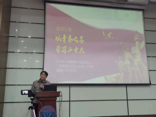 校团委书记马志波老师首先致辞,马老师肯定了演讲比赛是学习党的二十大精神是一种很好的方式,希望同学们能够有所学,有所悟,并实践自己的想法。他鼓励同学们不仅要学在此时,还要学在长久,不断提升自身的理论水平。