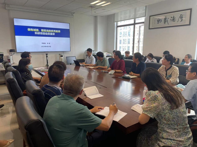 科技处孙吉老师作了《做有诚信、敢担当的优秀教师——科研项目动员宣讲》,他详细介绍了学校科研方面的相关政策文件、历年项目立项情况等,并针对校级基金项目和科研骨干项目的申报,为大家进行详细辅导。同时,他还强调教师在科研过程中一定要讲诚信。