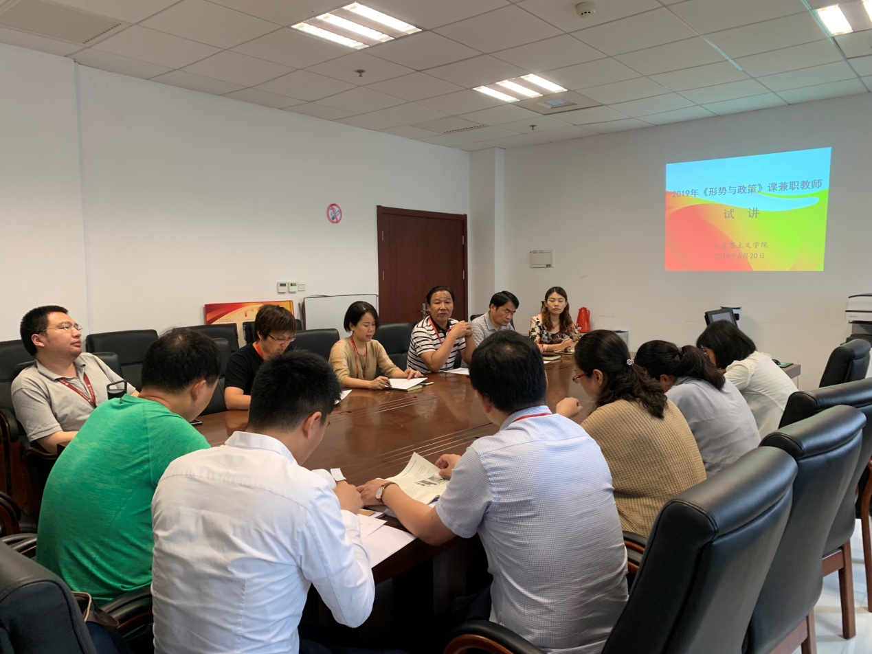 试讲结束后,朱清对各位老师的认真准备表示感谢,同时提出几点希望:第一、精心备好每堂课,积极参加学院的集体备课活动;第二、严格执行教学管理规章制度;第三、积极参与“形势与政策”的课程建设。