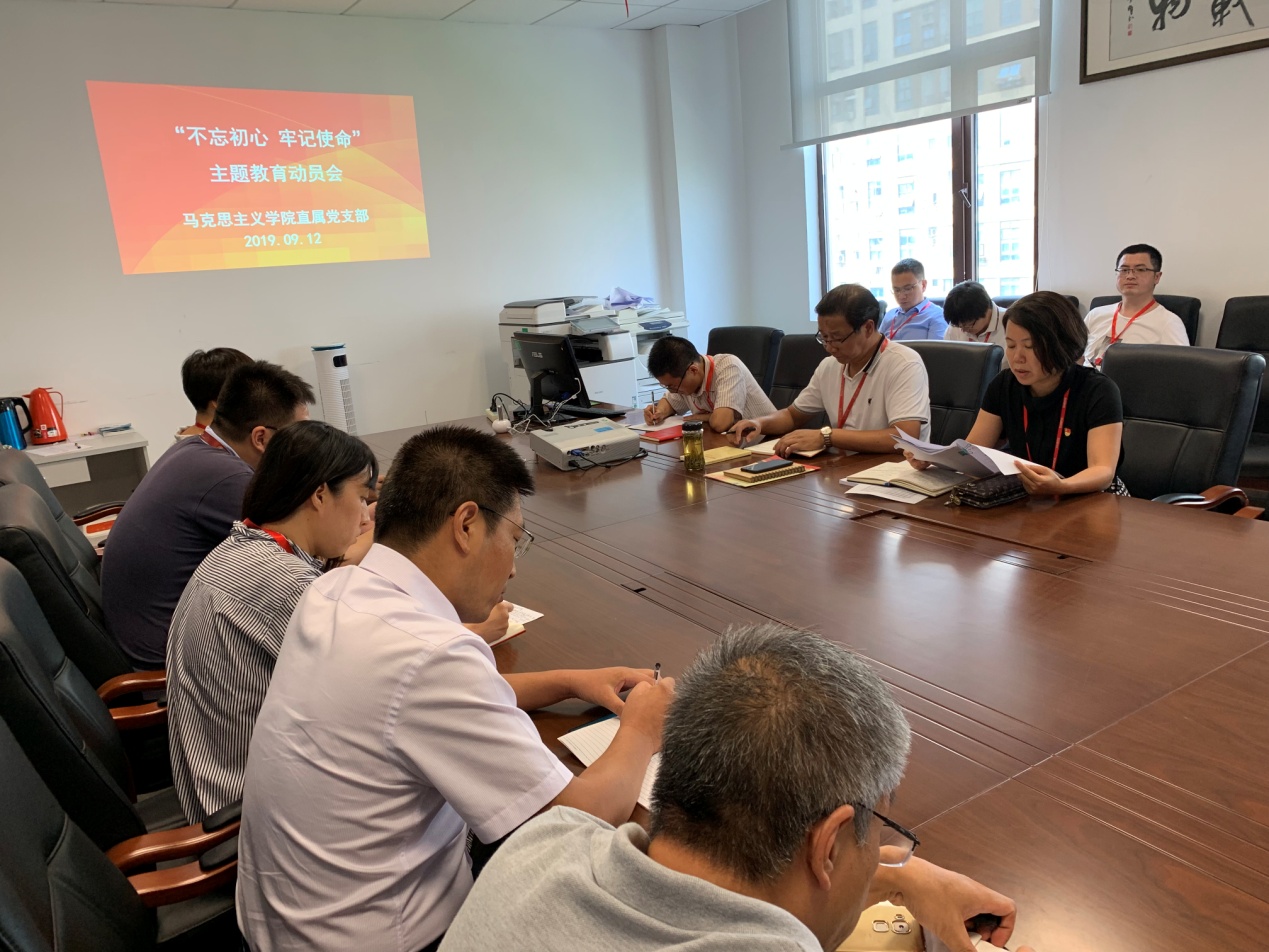 9月12日下午,betway西汉姆联直属党支部在南苑2号楼502召开“不忘初心、牢记使命”主题教育动员会,全体党员出席会议。