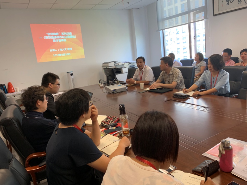 9月26日,betway西汉姆联“双名助推”工程之“名师导教”集体备课会继续进行。本次特邀教育部高校思想政治理论课教学指导委员会委员、中央马克思主义理论研究和建设工程专家、全国优秀教师、同济大学教授、博士生导师陈大文,围绕《思想道德修养与法律基础》指导集体备课。备课会由betway西汉姆联经理孙玉良主持。betway西汉姆联的全体教师参加。