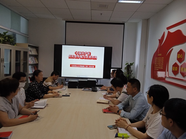 教工第二党支部书记江先锋围绕“中国共产党的光荣传统与优良作风”主题,从党风的内涵要义,党的三大优良作风、从“二个务必”到“三个务必”三个部分阐述了中国共产党优良作风主要内容、形成的历史过程和重要意义。要求全体支部党员要把党纪学习“内化于心”“外化于行”,不断传承和发扬党的光荣传统和优良作风,不断锤炼自己,力争成为一名优秀的新时代思政课教师。