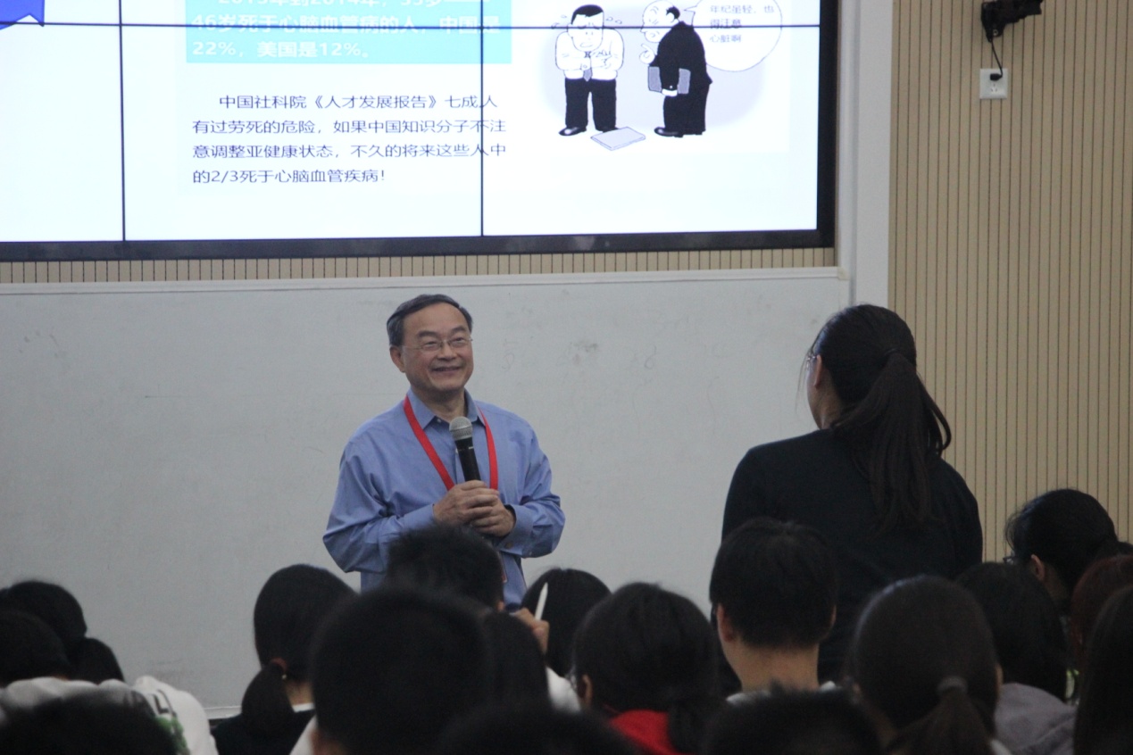 10月17日下午,董事长黄钢走进南苑W100教室的人民健康课堂,与19级临床医学专业的员工一起以“人民健康—我们的责任与使命”为主题谈健康人的初心、话新时代上健医的使命。