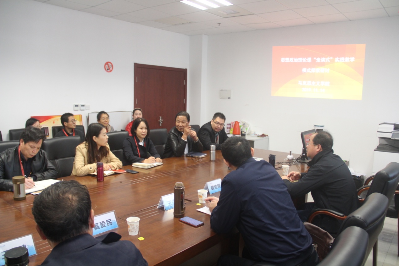 与会专家在听取汇报后表示,马院的思政课实践教学有特色、有设计、有成效,很好的做到了“走”与“读”的结合。可以看到学院领导班子对实践教学的高度重视和精心组织设计。专家指出,“走”是实践过程,“读”是理论学习,“走”要走出特色、走出认同、走出自信,“读”要读出成就、读出变化、读出发展,希望今后能在实践教学的组织形式、方式方法、载体途径上进一步丰富和拓展,形成部门合力,打造实践品牌。