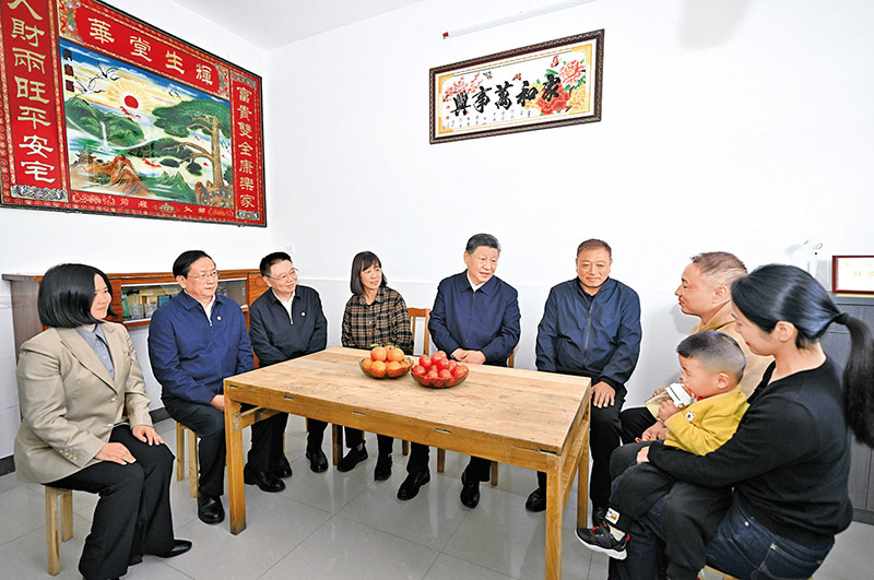 2024年11月4日至6日,中共中央总书记、国家主席、中央军委主席习近平在湖北考察。这是5日上午,习近平在咸宁市嘉鱼县潘家湾镇四邑村村民熊成龙家,同一家人围坐在一起拉家常。 新华社记者 燕雁/摄
