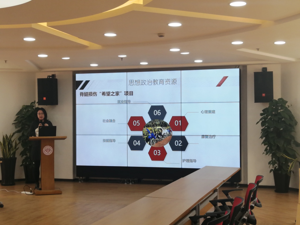 2018年6月,betway西汉姆联与上海市阳光康复中心签约共建老员工思想政治教育实践基地。一年多来,双方在思想政治理论课教学、志愿服务、实习见习中的思政教育等方面开展了深度合作,使“阳光.思政”成为双方共建的思想政治教育品牌。胡佳科长对照学校课程思政示范基地的标准从三个方面对实践基地的建设进行了汇报,全面展示了双方在思政课程、课程思政、志愿服务及见实习思政方面所做的探索。曹月柱副经理对基地建设的整体设计及下一步双方开展的合作进行了介绍。11月21日,上海阳光康复中心的生命教育宣讲团将走进人民健康课堂开展“让阳光洒满心田、让奋斗成为青春最鲜亮底色”的主题宣讲。