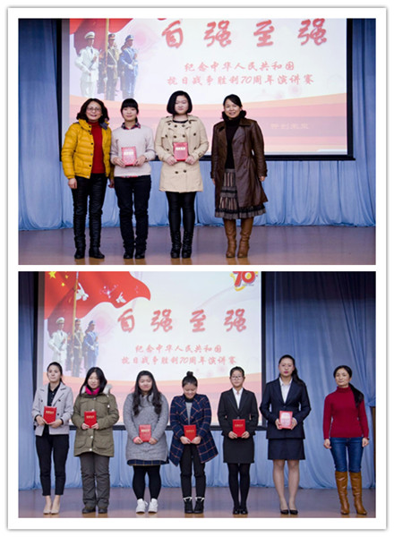 12月22日下午,在学校各相关部门的大力支持下,由思政部主办的“自强至强——纪念抗战胜利70周年”演讲比赛决赛在徐汇校区大礼堂成功举行。来自高职2015级的12名选手参赛。最终评出一等奖2名、二等奖4名、三等奖6名。