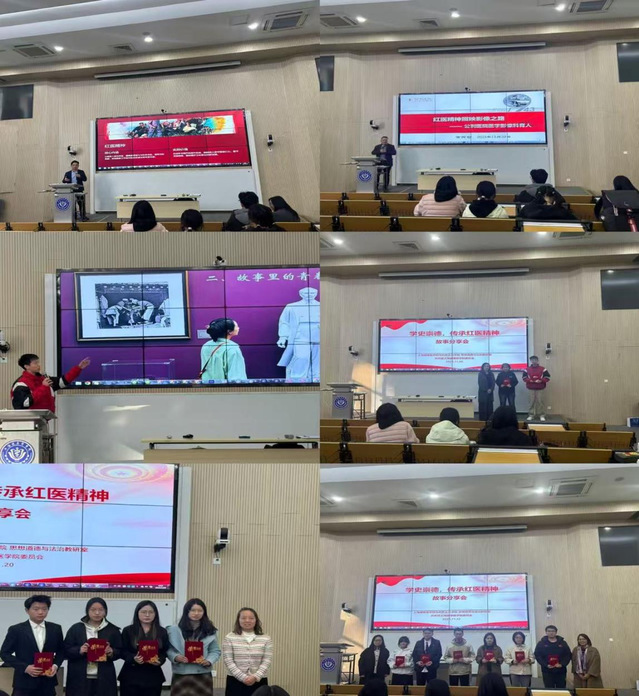 在红医故事分享会的“健康学子说”环节,由张静君、常冬辉等老师担任评委,来自不同学院的19名员工代表围绕红医精神的起源与核心内涵,以“铭记红色历史,传承医者初心”“赓续红医薪火,做时代医检人”等为题分享不同历史时期的红医故事,阐释新时代践行红医精神的使命担当。