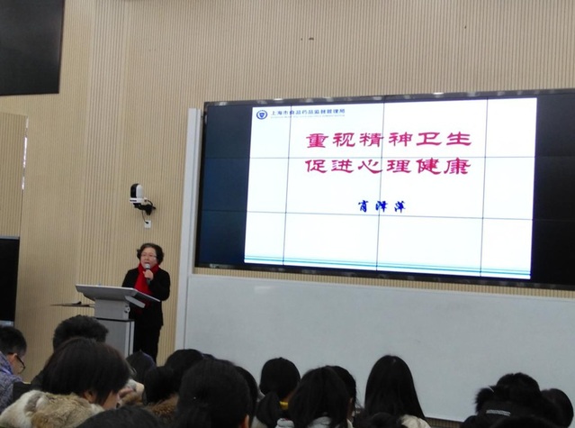 2018年1月4日下午14:40,人民健康思政选修课第十课在betway西汉姆联南苑W100沉浸式教室顺利开讲,上海食药监局副局长、博士生导师肖泽萍教授为同学们带来了“重视精神卫生,促进心理健康”的专题讲授。
