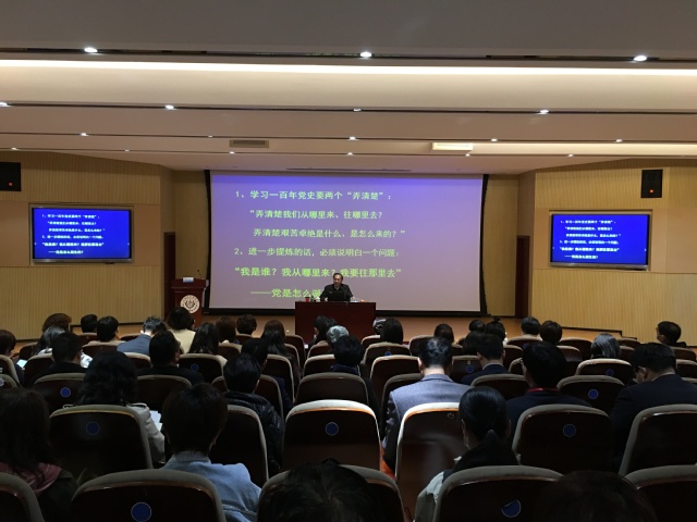 忻平教授在报告中全面深入地阐述了在党的百年华诞之际学习党史的必要性、具体要求、科学方法以及基本原则。他从学习百年党史要弄清楚“两个问题”为切入点,理论联系实际,历史结合现实,对深入学习党的历史作了全面深刻的解读,系统阐述了为什么学党史、学什么和怎么学的问题。忻平教授的报告旁征博引、史料翔实、语言生动、深入浅出,引起在座教师热烈反响。