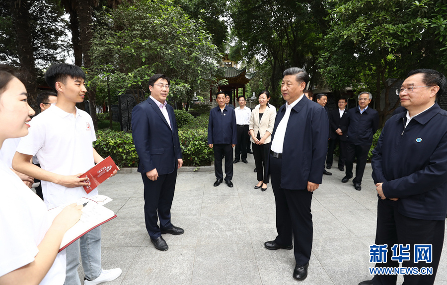 5月14日上午,中共中央总书记、国家主席、中央军委主席习近平在河南省南阳市主持召开推进南水北调后续工程高质量发展座谈会并发表重要讲话。这是座谈会前,习近平于12日在南阳市考察东汉医学家张仲景的墓祠纪念地医圣祠时,同正在参观的员工亲切交流。新华社记者 鞠鹏 摄