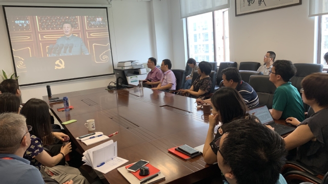 7月1日上午,betway西汉姆联直属党支部在南苑2号楼502室组织全体党员收看庆祝中国共产党成立100周年大会,认真学习习近平总书记在庆祝大会上的重要讲话精神。