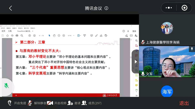 在新学期即将开学之际,为了更好地把握《概论》课教材新修订的基本状况,并深入研究习近平“七一”重要讲话精神并把这一精神贯穿到教学之中,8月20日下午,马克思主义中国化教研室全体教师参加了上海市教委思想政治理论课教学指导委员会“概论课”分教指委组织的“学习习近平'七一'重要讲话精神暨《毛泽东思想与中国特色社会主义理论体系概论》新版教材备课研讨会”。因受疫情影响,本次会议主要在线上举行。