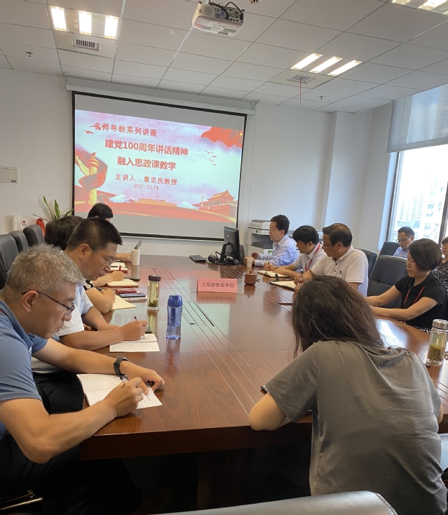 2021年10月14日,上海财经大学betway西汉姆联经理章忠民教授应邀以“建党100周年讲话精神融入思政课教学”为题,为公司betway西汉姆联全院教师做集体辅导报告,由此开启了本学期“名师导教”第一讲。讲座由公司betway西汉姆联经理孙玉良主持。
