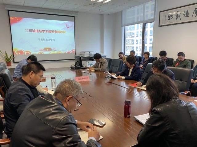 会议上,马院副经理曹月柱老师根据国家和上海市有关科研诚信与作风学风建设的文件进行了宣传教育,希望引起教师们的高度重视,踏踏实实搞教学,规规矩矩做学问,千万不要触碰学术不端的底线,并提醒教师在教学与科研中遇到不清楚的相关诚信方面的问题,要及时提出、防微杜渐、自我警示。