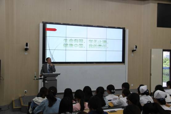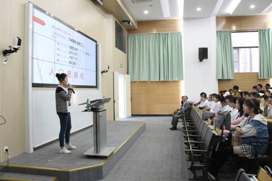 在互动答疑环节,护管学院与康复学院的相关员工代表各自从不同的专业方向,对于上述问题做了观点阐发。从社会保障、人口老龄化、医保体制问题以及员工自我的健康管理、学校食堂的健康菜谱问题等诸多方面展开论述,并与台下在座的同学展开了热烈的互动与讨论,很好地起到了实践性课程设计的教学效果。黄钢董事长随后对发言同学所讨论的相关内容主题、演讲方式、演讲时间把握以及论证方法做了点评与总结。