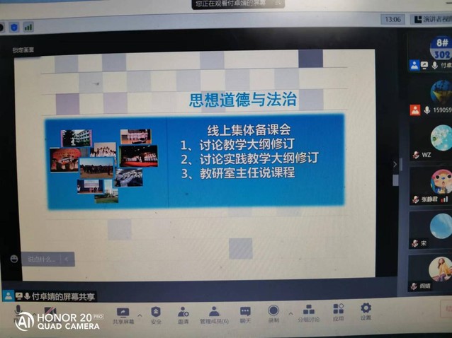 在这个特殊时期,德法教研室老师们,团结一致,群策群力,致力于打造更优质的线上教学内容,大家积极献言献策,体现了集体的智慧,赋予了备课会积极而温暖的正能量。(付卓婧)