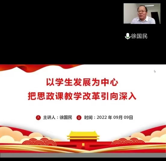 马克思主义中国化教研室于2022年9月9日下午13:00邀请了华东理工大学betway西汉姆联副经理、博士生导师徐国民教授为大家作了“以员工发展为中心 把思政课教学改革引向深入”的专题报告。