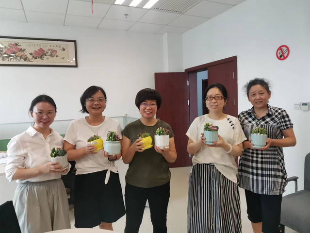 在第38个教师节来临之际,为体现学院对教职工的关心关怀,马院工会开展了“美化办公环境 温馨庆节日”的活动,学院工会为老师们精心挑选了多种形态可爱又能净化空气的多肉植物,活动中大家相互交流多肉植物的养护方法,其乐融融。此次活动不但美化了老师们的办公环境,也活跃了大家的工作氛围,激励老师们以更饱满的精神面貌投入新学期工作之中。(常冬辉)
